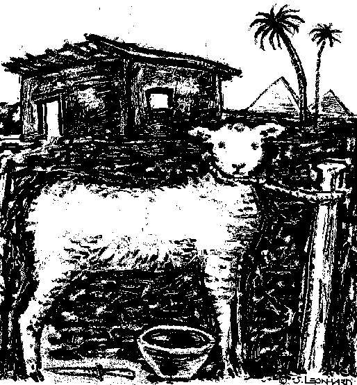 Leader: This story begins at a time long before Moses with Joseph, who was the favorite son of the patriarch Jacob. Joseph was sent by his father unto his brothers, and because they were jealous of the pre-eminence which God Himself had promised Joseph, he was sold for a token price by his brethren and handed over to the power of gentiles. As a slave in Egypt, Joseph was subjected to temptation and overcame it. He was falsely accused and suffered for sin that was not his own. After a season of suffering, Joseph was exalted to pre-eminence just as God had foretold. At age 30, he began to exercise his authority in ministering life to the needy. A great famine came upon the whole earth and Joseph's brother's came to Egypt to buy food. Joseph supplied their needs, but was unrecognized by his own brethren. At the right time, he revealed himself. The eyes of his brothers were opened and his they clung to him and wept. The children of Israel came to Egypt to escape the famine and settled in Goshen where they prospered, and as generations passed, they became a great and numerous people. "Then arose a new Pharaoh who knew not Joseph." He beheld the might of Israel, and he feared that in time of war, the sons of Jacob might join themselves with Egypt's foes. So he subdued the Israelites, and afflicted them with cruel labor. Taskmasters were placed over the Israelites, to compel them to make bricks and to build Pharaoh's great storage cities of Rameses and Pithom. But despite their hardships, they continued to thrive just as God had promised. This caused Pharaoh even greater alarm, and he ordered the slaughter of Israel's infant sons. By his command, every male child born to the Hebrews was to be cast into the Nile and drowned. The afflictions of the Israelite people were cruel and many. In anguish they cried out to the God of their fathers. And God heard their cry. God remembered His covenant. And God raised up a deliverer, a redeemer -- the man Moses. And He sent Moses to Pharaoh's court to declare the commandments of the Lord; "Let My people go!" But Pharaoh would not listen to the Lord of Hosts. And so, Moses pronounced God's judgment on Pharaoh's house, and on Pharaoh's land. Plagues were poured out on the Egyptians, upon their crops and upon their flocks. But Pharaoh's heart was hardened. He would not yield to the will of God. He would not let the house of Jacob depart. Then the tenth plague fell upon the land: The death of Egypt's first born, "And all the firstborn in the land of Egypt shall die, from the firstborn of Pharaoh that sitteth upon his throne, even unto the firstborn of the maidservant that is behind the mill; and all the firstborn of beasts. And there shall be a great cry throughout all the land of Egypt, such as there was none like it, nor shall be like it any more. But against any of the children of Israel shall not a dog move his tongue, against man or beast: that ye may know how that the LORD doth put a difference between the Egyptians and Israel." (Exodus 11:5-7) Thus did the Lord execute judgment against all the gods of Egypt. But to protect the children of Israel, God commanded the head of each Hebrew household to sacrifice a spotless lamb and to apply its blood to the doorway of his home, first to the top of the doorway the lintel, and then to the two sideposts.