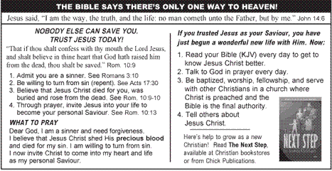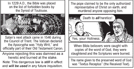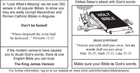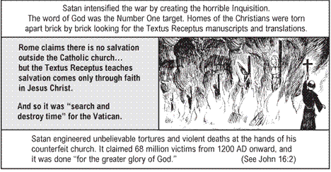 When it comes to the Bible one chooses to use and KNOW to be the very Word of God, promised to be perfect, one will either end up in these last days with faith that is based upon a pope whose god is Lucifer, or faith that is based upon the word of God. Using any other bible than the KJV, will result in faith that can not possibly be as strong as it otherwise would be. THINK – what is more important than to KNOW that you know, that you have the Word of God? How else can one battle the devil as the Lord Himself showed us? It is written. It is written. It is written. For the Word of God is quick, and powerful, and sharper than any twoedged sword, piercing even to the dividing asunder of soul and spirit, and of the joints and marrow, and is a discerner of the thoughts and intents of the heart. Such a one who does NOT KNOW that God has kept His promise of Ps 12:6-7 is left without a final authority. You can mark it down that Lucifer, his pope, or other witting or unwitting agents of Mystery Babylon, are everywhere standing against the more sure Word of God. The attackers of the KJV will rise up with doubt to keep you from KNOWING IT IS WRITTEN. It is written that we may learn the fear of God, that we may learn submission to God, and that we may resist the devil and see him flee from us. It is written. It is written. It is written. The Word of God has that power. It is written.