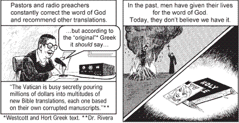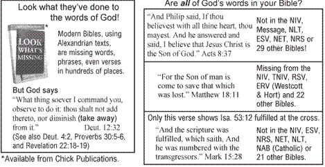 It should be said that ALL bibles subsequent to the 1611 KJV Holy Bible, all modern bible translations, are corrupt through and through. All of them, yes ALL of them, are founded principally on two blasphemous manuscripts. The KJV has been blessed by the Holy Spirit more than any other text in the history of the world, including the underlying Hebrew, Greek, and Aramaic. Beyond that, the KJV is still God's only viable written Word in the English language today. This is the issue. Everything else is simply a diversion from the fact that God kept His promise by way of that KJV, The HOLY Bible.