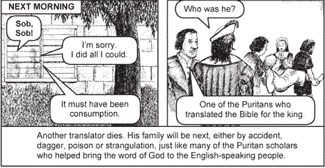 Regardless of the character of King James, which liars have so obviously tried to defame, God used that King for the greatest literary project in history. The character of King James I, though outstanding and exemplary compared to all the kings of this world at that time, is really irrelevant. The simple historical fact is that God worked His purpose to keep a promise through King James. That is as certain as God being able to empower Balaam to hear his donkey speak to him. The most faithful men in his realm, from the extremes within the Body of Christ of high church Anglican liturgical formalism to the most non-formal Scripture-only Puritans, were part of the translation committee. The translators were fully persuaded that they were handling the very Word of God. They were all God-fearing men of character, known to be blameless, vigilant, sober, of good behaviour, apt to teach.