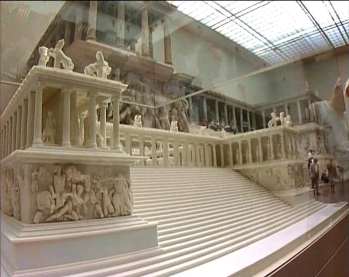 German Archaeologists also found in an amazingly well preserved condition the Ishtar Gates of Babylon. (Pictured Below). In 1913 Germany began bringing the actual gates of Babylon to also finally be set up in the Pergamon Museum in Berlin Germany. It did not take long for World War One to begin. By 1930 the entire Ishtar Gateway as well as the processional had been brought to Germany and erected in Berlin. The Skull & Bones member, in Germany known as the Thule Society member, Adolph Hitler, celebrated the erection of the Gates of Babylon and ESPECIALLY the Altar of SATAN’S SEAT. World war two resulted in the death of 55 Million, including 6 Million innocent Jews which Hitler sought to purge from Europe. Russia captured the Pergamon Altar or Satan’s Seat but in 1958 returned the Pergamon Altar back to Germany where it is now located in the European Union in Berlin, Germany.