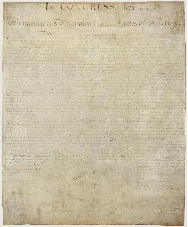 We hold these truths to be self-evident, that all men are created equal, that they are endowed by their Creator with certain unalienable Rights, that among these are Life, Liberty and the pursuit of Happiness. --That to secure these rights, Governments are instituted among Men, deriving their just powers from the consent of the governed, --That whenever any Form of Government becomes destructive of these ends, it is the Right of the People to alter or to abolish it, and to institute new Government, laying its foundation on such principles and organizing its powers in such form, as to them shall seem most likely to effect their Safety and Happiness. Prudence, indeed, will dictate that Governments long established should not be changed for light and transient causes; and accordingly all experience hath shewn, that mankind are more disposed to suffer, while evils are sufferable, than to right themselves by abolishing the forms to which they are accustomed. But when a long train of abuses and usurpations, pursuing invariably the same Object evinces a design to reduce them under absolute Despotism, it is their right, it is their duty, to throw off such Government, and to provide new Guards for their future security. —Such has been the patient sufferance of these Colonies; and such is now the necessity which constrains them to alter their former Systems of Government. The history of the present King of Great Britain [George III] is a history of repeated injuries and usurpations, all having in direct object the establishment of an absolute Tyranny over these States. To prove this, let Facts be submitted to a candid world.